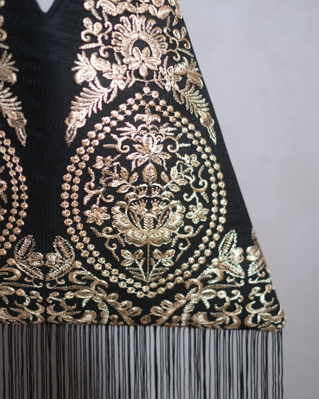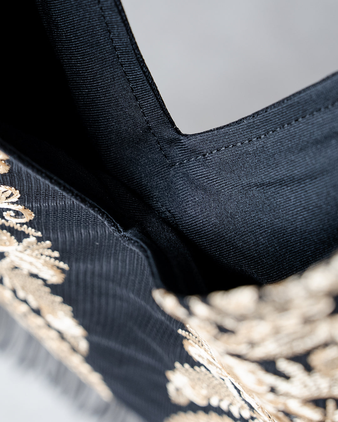 ※繊細な刺繍の為、刺繍の下糸や強度を上げる為ののりが表面にわずかに見える場合がございます。デザインを美しく保ち、刺繍を安定、強度を上げるために必要なものであり、下糸のわずかな露出は繊細な刺繍の構造上どうしても避けられない仕様となります為ご了承ください。