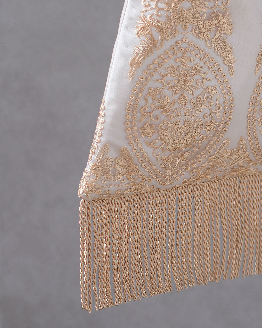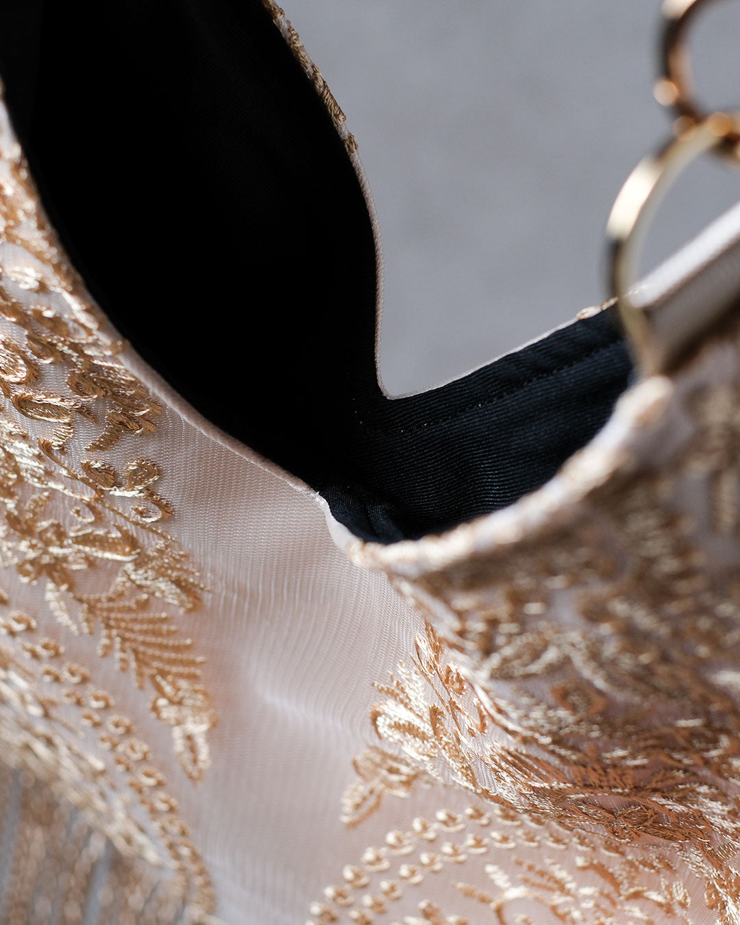 ※繊細な刺繍の為、刺繍の下糸や強度を上げる為ののりが表面にわずかに見える場合がございます。デザインを美しく保ち、刺繍を安定、強度を上げるために必要なものであり、下糸のわずかな露出は繊細な刺繍の構造上どうしても避けられない仕様となります為ご了承ください。