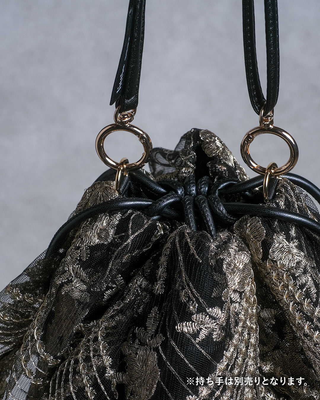 繊細な装飾が目を惹くクラシカルな巾着バッグ。